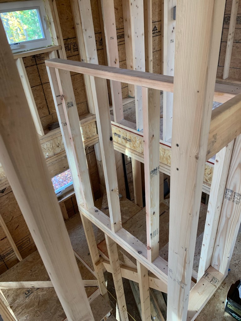 We also needed to frame up a small closet in the guest room, frame a taller wall for a proper stair railing, and caulk the tops of some of the windows