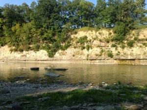Back on the bike, we meandered toward Salamonie Reservoir. After getting off the bike, we hiked down a steep staircase to the base of the dam that supplies the Salamonie River. We connected to a trail in the adjoining woods, and enjoyed a gorgeous 1/4 mile hike complete with a pretty descent climb up to a picnic and parking area.