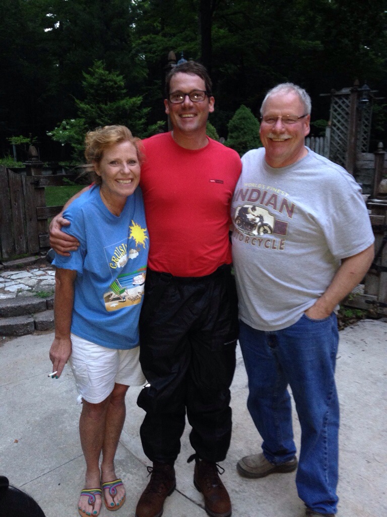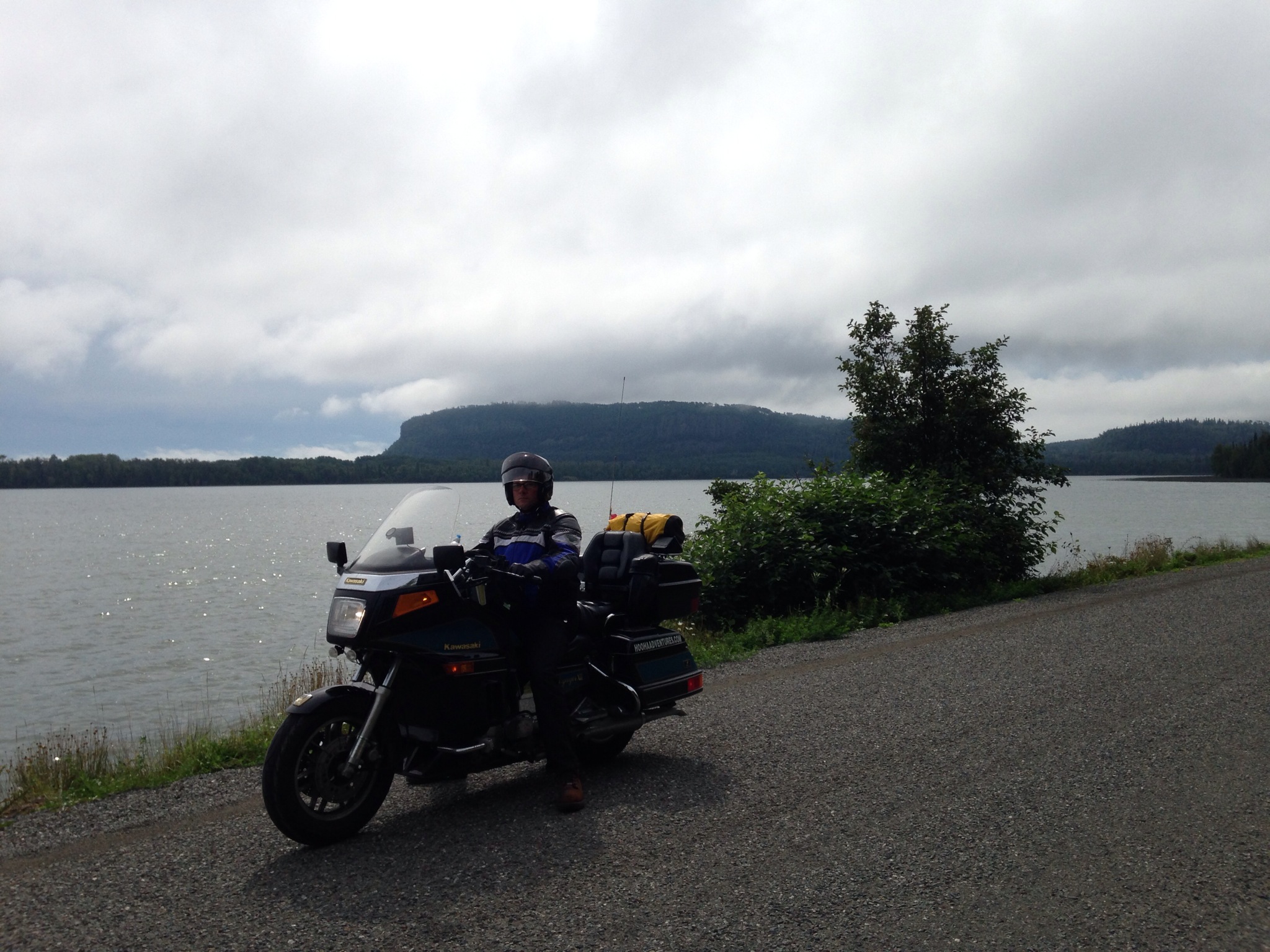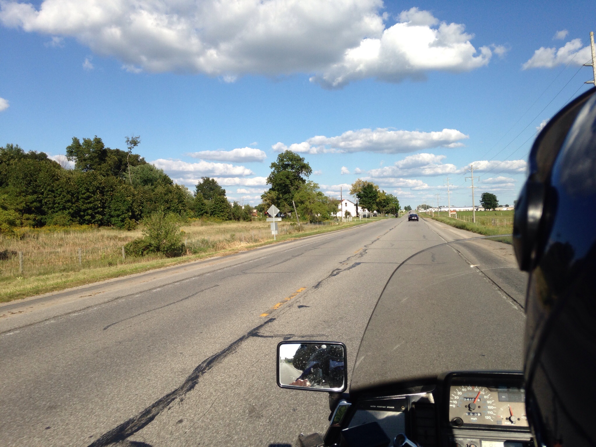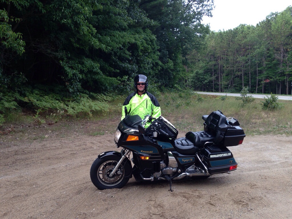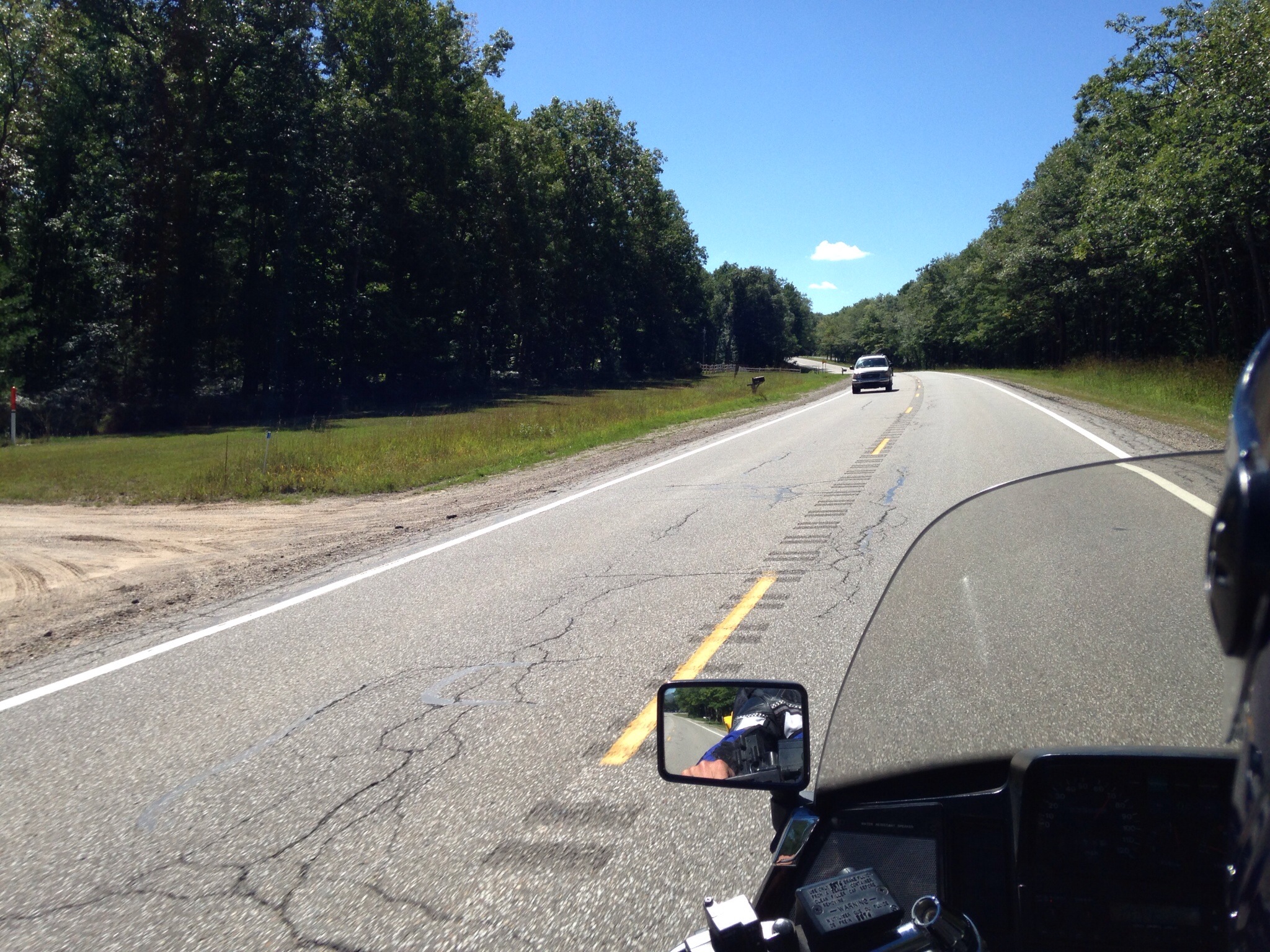 It’s been a long year since the last big adventure to Cape Breton. We headed out after our packing, errands and work around 2:00. The weather was partly cloudy, and a little breeze to make the riding comfortable with coats and gear. We traveled 69 to 94 until we got off the highway for gas in Galesburg. The sky was getting blacker and people at the gas station remarked “hope you are going East”. We started off as it began to rain lightly and stopped under an overpass to let the weather go past us.