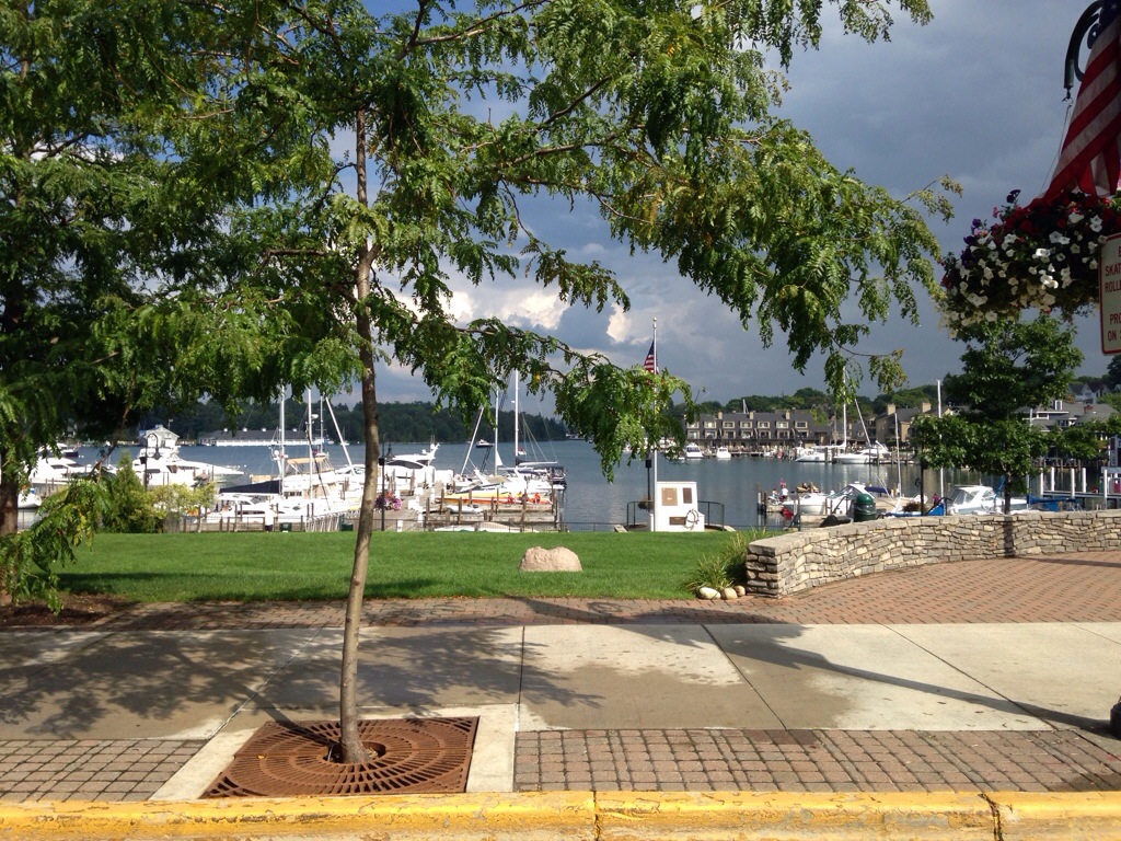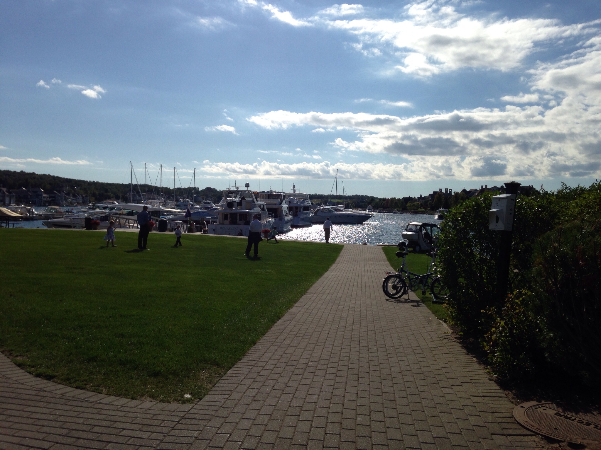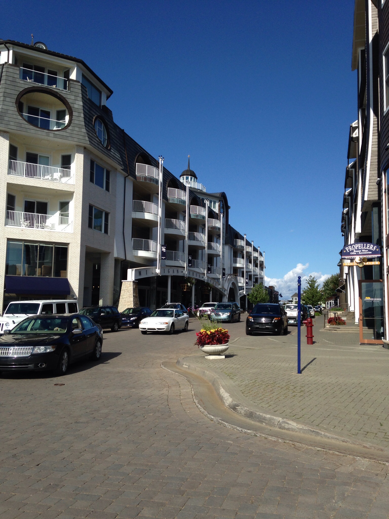 We drove down into Bay Harbor, an upscale residential community on Little Traverse Bay, that, according to Wikipedia, is “The Pebble Beach of the Midwest”. All we know is that there were a lot of big, beautiful boats in that marina and some expensive shops for shopping!