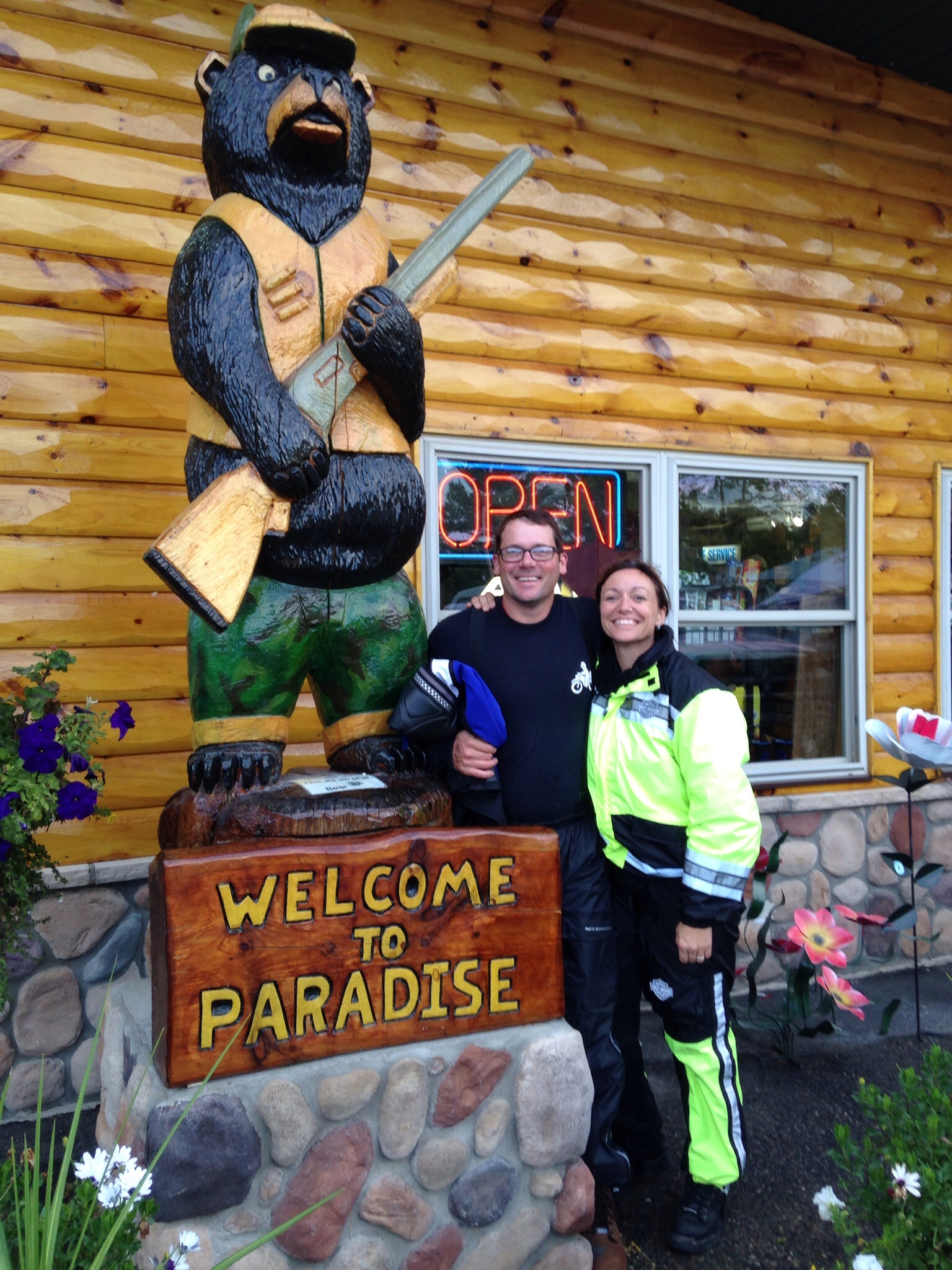 With the sky getting black again, we raced away from Whitefish Point to dodge the raindrops, stopping briefly in Paradise for some fuel. image