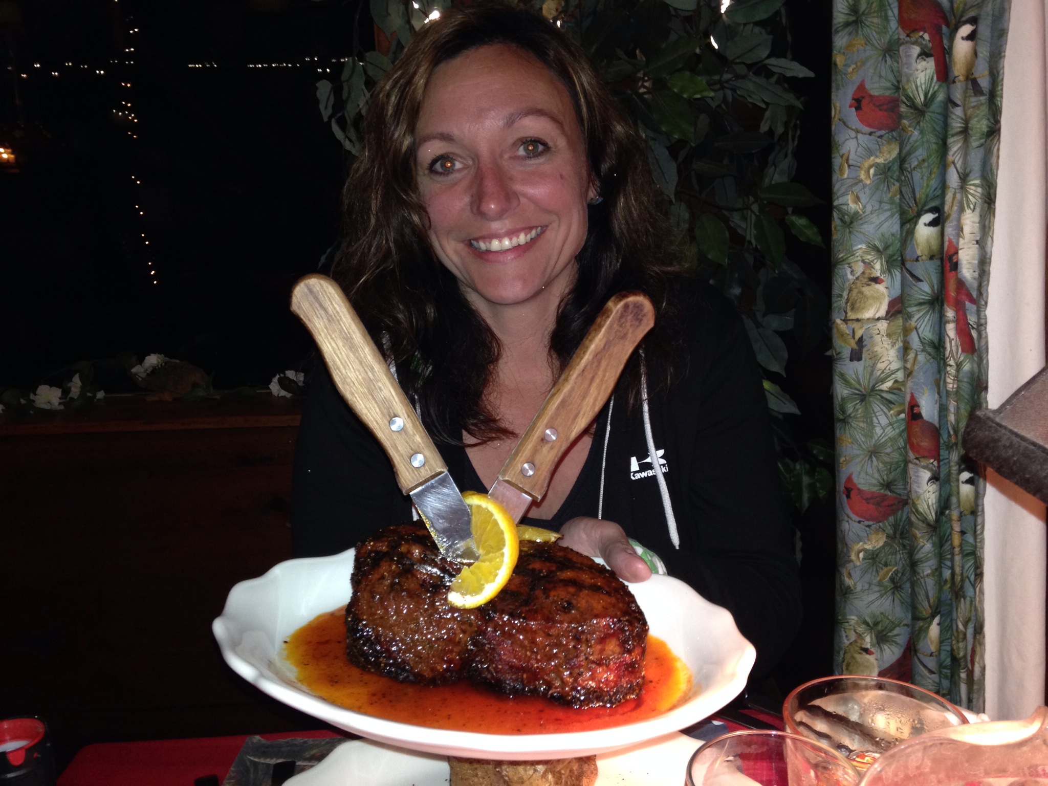 After we finished an amazing dinner, the owner told us to order the sirloin for two next time. A prime cut of aged sirloin steak that is so popular and you can cut it with a fork… Sign us up!! A long full day ended with a great dinner and restful sleep in the cabin. Until tomorrow… J & M